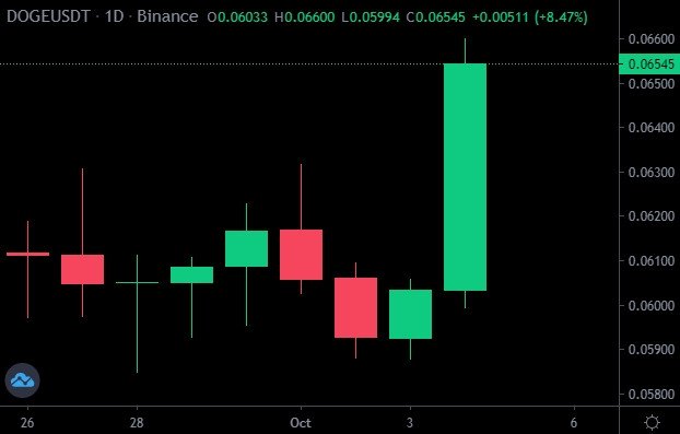 Dogecoin now is trading at around $0.065, having hit an intraday high of just over $0.066 at press time.